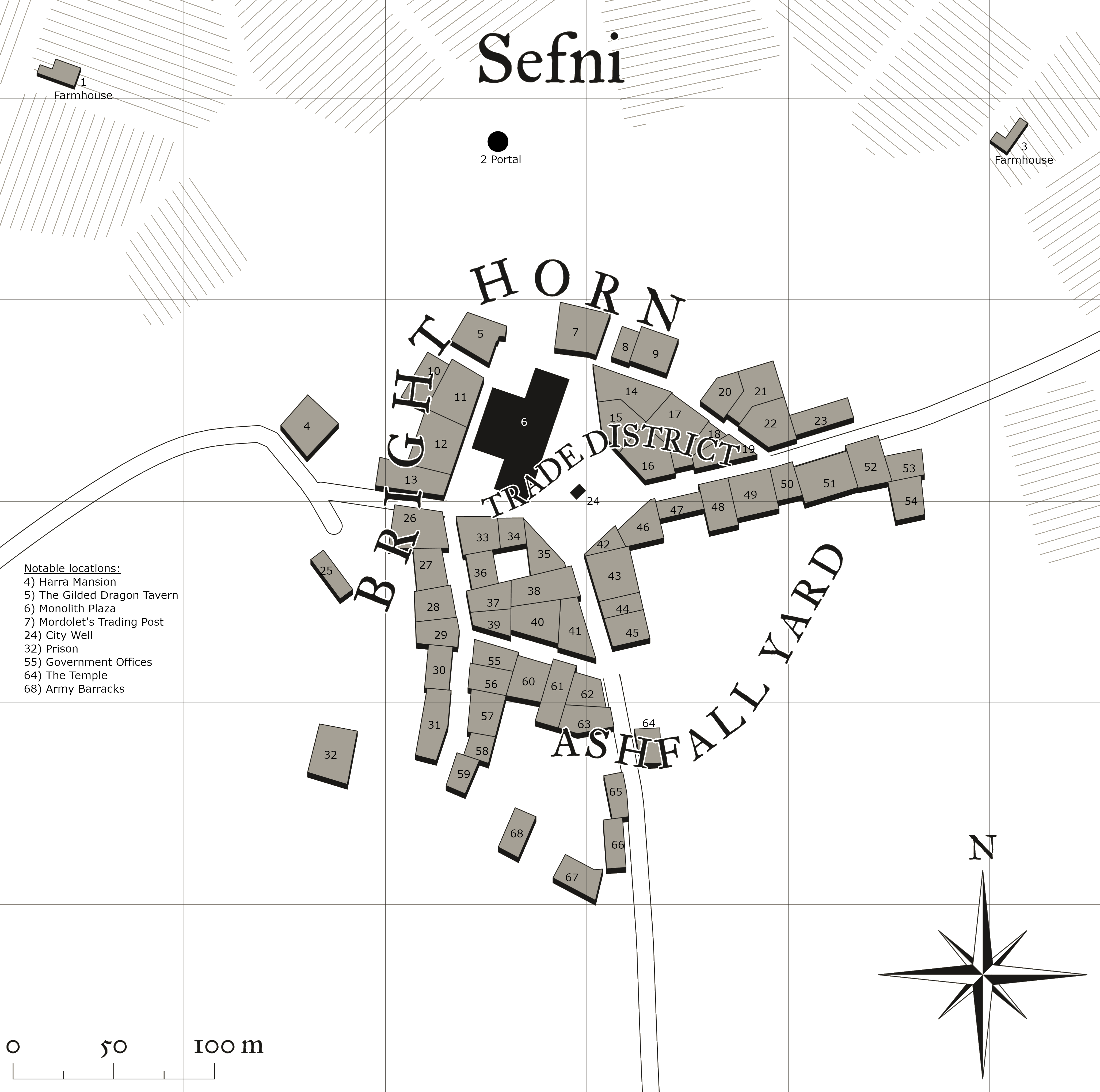- The Harra Family – The wealthiest and most powerful faction in the region. They founded the town of Sefni, and their control extends over most of the region, including most other factions in one way or another. But cracks are starting to form. (See NPC list for specific members of the family).